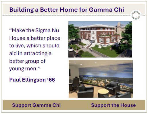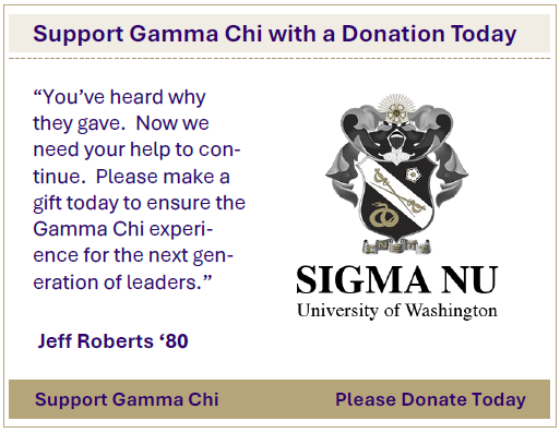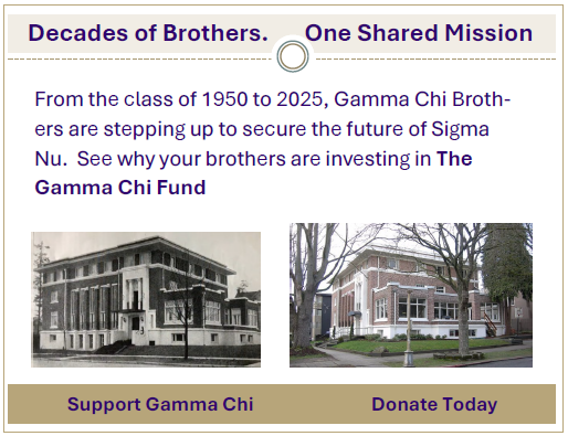Now is the time to keep the momentum going. Your gift today ensures Gamma Chi remains strong for generations to come. Whether it’s preserving our historic home, funding scholarships, or creating opportunities for brotherhood, every contribution makes a difference.