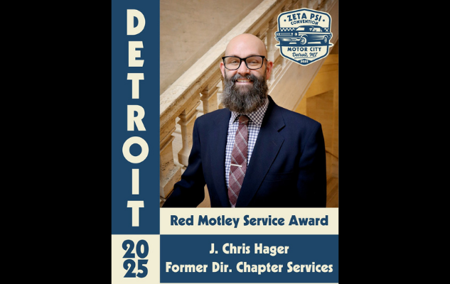 Congratulations and Hi Rickety to Brother Chris Hager, who received the Arthur “Red” Motley Service Award from Zeta Psi Fraternity this past July. The Red Motley Service Award honors a Zeta Psi staff member whose work reflects a legacy of unwavering devotion and service to the fraternity. In recognizing Chris for the award, Zeta Psi shared, “This year, we proudly recognized Chris Hager for his deep impact and hard work during his time on staff. From operations to mentorship, Chris brought dedication and care to everything he did."