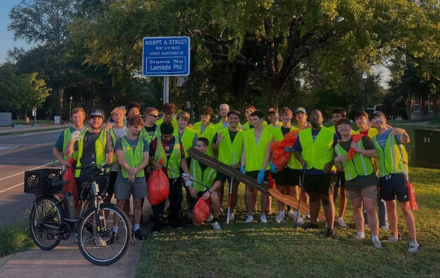 In early September, brothers of the Lambda Phi Chapter at the University of Central Arkansas took to Donaghey Avenue for their monthly community cleanup. Through the city’s Adopt-A-Street program, the chapter has “adopted” Donaghey Avenue and regularly volunteers to keep it clean and welcoming.