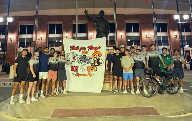 Ahead of the Houston vs. Oklahoma State football game on October 11, Zeta Chi Chapter at the University of Houston continued its signature Trek for Troops fundraiser, completing a 560-mile, 48-hour bike ride from UH to Stillwater, Oklahoma. First launched in the 1970s as a game-ball relay run, the event was revived in 2023 with a new mission to raise funds and awareness for the Wounded Warrior Project, supporting injured veterans and service members. This year’s ride marked the most ambitious yet, as Zeta Chi brothers invited the Epsilon Epsilon Chapter at Oklahoma State to join the effort. The two chapters met at the Texas-Oklahoma border and finished the journey together. In total, the collaboration raised more than $7,000 for the Wounded Warrior Project.