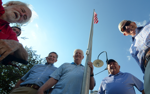 New American flags are now proudly flying both inside and outside the McComb Railroad Depot, thanks to generous donations from Jim McIntyre of A Complete Flag Source in Jackson and the Judith Robinson Chapter of the Daughters of the American Revolution. McIntyre donated the exterior flag in memory of Epsilon Xi Chapter alumnus Dr. Ralph Brock, with several of Brock’s chapter brothers present for the installation.