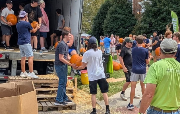 The Eta Chi Chapter at Old Dominion University kicked off the fall season by lending a helping hand at Larchmont United Methodist Church, helping unload more than 2,500 pumpkins for the church’s annual pumpkin patch. Brothers and candidates worked side by side throughout the day, grateful for the opportunity to serve and support the Norfolk, Va., community in a fun and meaningful way.