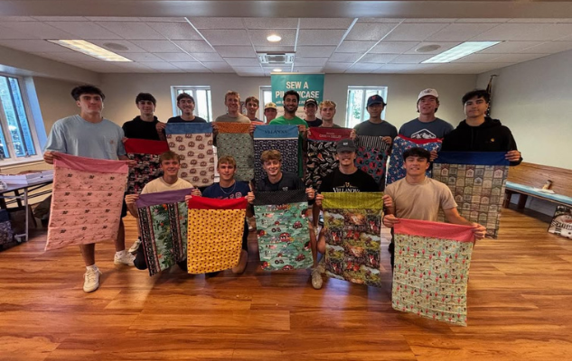 During Villanova University’s Day of Service, brothers from the Kappa Zeta Chapter partnered with the Villanova Dance Team to volunteer with Ryan’s Case for Smiles, a worldwide nonprofit that provides colorful, handmade pillowcases to children facing extended hospital stays. Working alongside volunteers from the organization, the group learned to sew and created 475 pillowcases for children battling pediatric cancer.